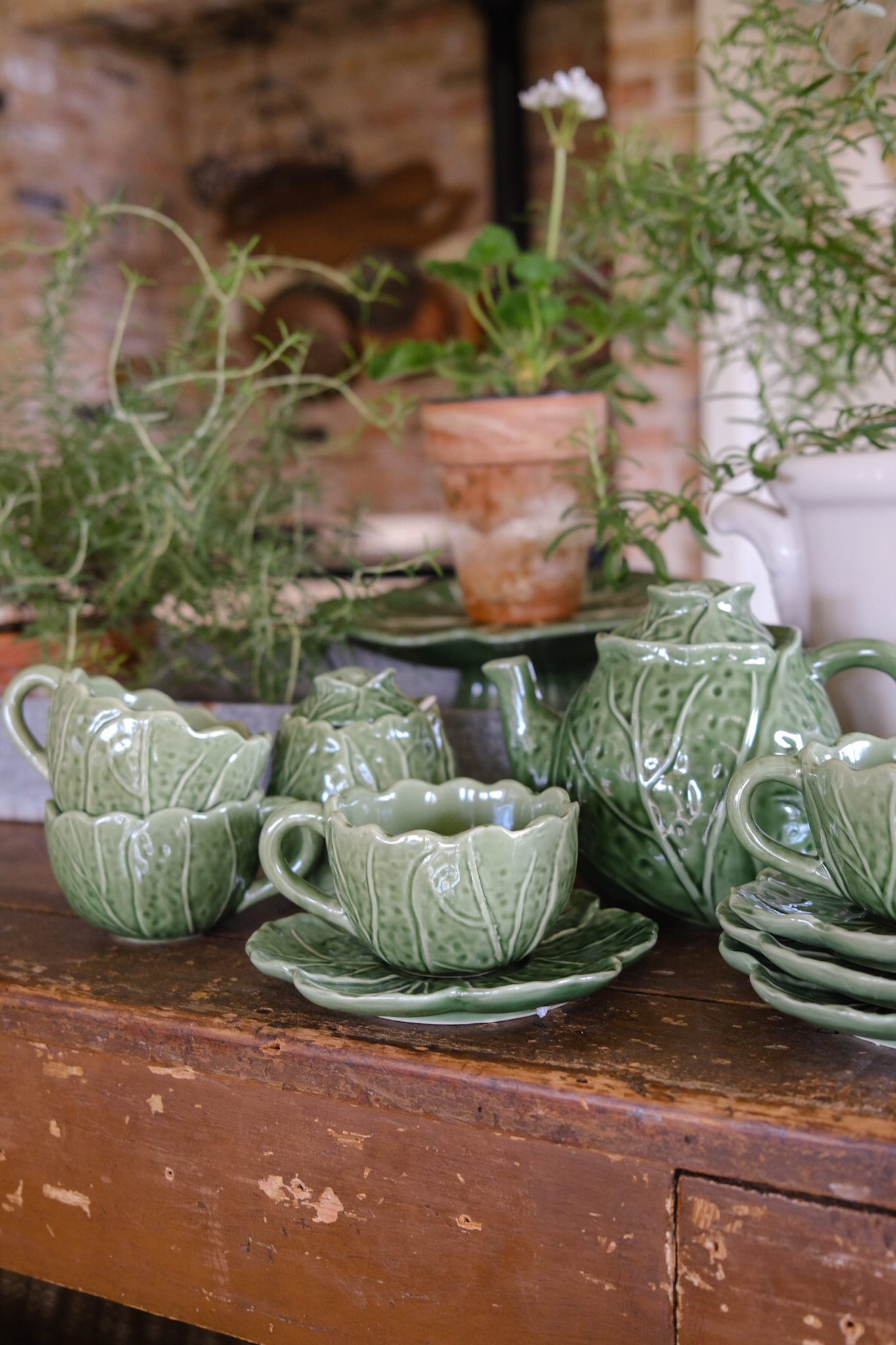 - The Cabbage Teapot + Cabbage Sugar Bowl & Creamer Set: These are pure joy. A nod to classic English cottage style, they bring so much charm to tea time — or just your everyday coffee ritual. I styled mine on a kitchen tray with a few vintage spoons and a candle… instant cozy.